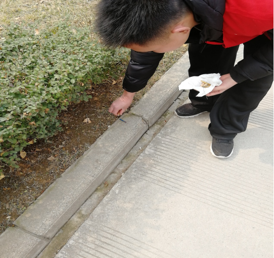 在活动过程中,学生们阳光向上,精神状态饱满。从图书馆门口出发,沿着学校主干路沿途打扫,捡拾垃圾。