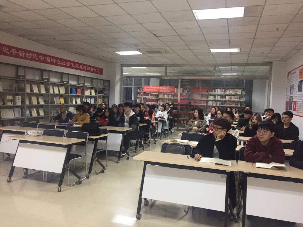 为了提升大学生思想政治理论素养,引导学生全面了解党和国家的历史与建设成就,必赢bwin线路检测中心于11月6日晚组织学生在西安工业大学红色图书馆开展学习和参展活动,马克思主义学院院长田亮教授主讲。