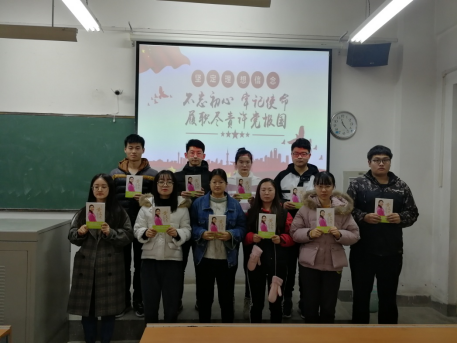 党员们观看了“时代楷模-黄文秀”事迹视频,学院为每位党员发放党建读物《黄文秀——用生命坚守初心使命的优秀青年共产党员》。杨老师希望广大学生党员学习黄文秀同志的奋斗精神,切实践行“不忘初心、牢记使命”, 做一个合格的共产党员。今后无论是走向平凡的工作岗位,还是走在继续求学深造的路途上,无论是在发达的城市,还是在偏僻的农村,不管在哪里,都以优秀共产党员的标准严格要求自己,争取在未来的工作中做一等学问、成社会栋梁,为民族复兴大业做出自己的贡献!