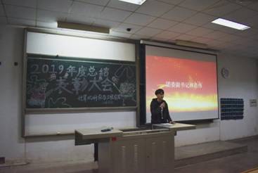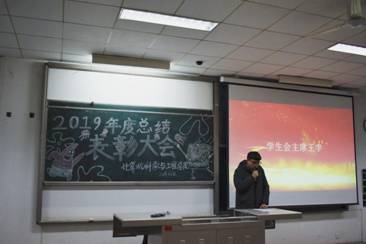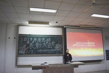 2019年12月27日下午6:30,必赢bwin线路检测中心2019年度总结表彰大会在教1-103隆重召开,出席本次活动的有辅导员于杰老师、团委书记呼延晓蓉老师,各部门部长和全体部员干事。