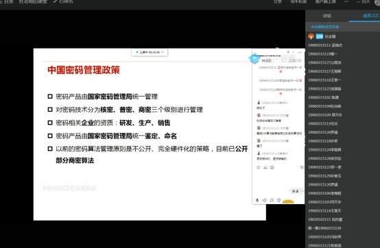 1、杜志强老师《信息对抗技术专业学科前沿讲座》课程:19060315班,应到31人,实到31人,学生与老师有一定的互动,课堂氛围活跃,教学效果优良。