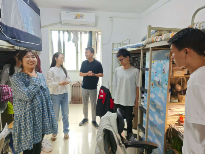新学期伊始,为全面落实学校校园安全稳定检查相关要求,9月2日下午,必赢bwin线路检测中心组织全体学工干部深入学生宿舍,开展全面安全卫生检查与暖心走访活动。