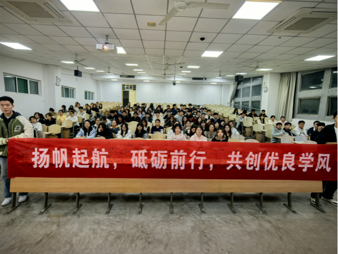 最后,孙君带领现场学生发起“抬头躬耕学问 不负青春韶华”学风倡议,全体同学积极响应,承诺将自觉践行优良学风,珍惜时光,勤学笃行。