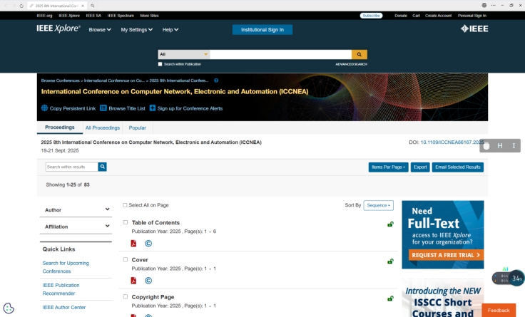 由西安工业大学新型网络与检测控制国家地方联合工程实验室组织发起,西安工商学院、长安大学、西安建筑科技大学、美国密苏里西州立大学、白俄罗斯国立交通大学、俄罗斯圣彼得堡理工大学等高校联合组织的第八届计算机网络、电子与自动化国际会议论文集于11月5日在IEEE数据库Xplore出版发行。