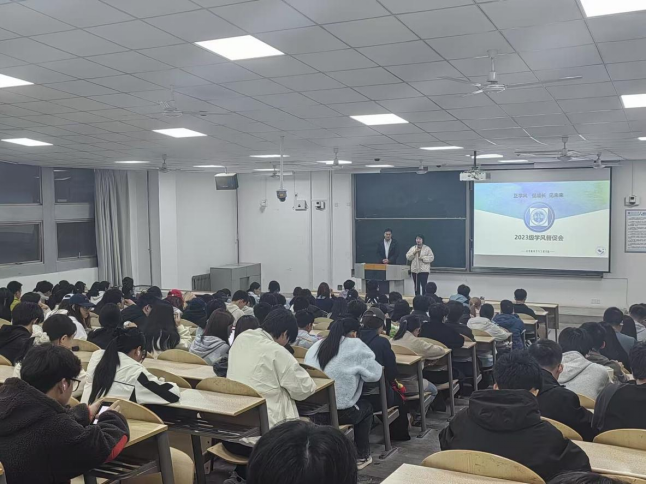 为积极营造公正、诚信的考试环境,着力培养学生的诚实守信品质,助力学生树立正确的学习观和价值观,必赢bwin线路检测中心于12月8日下午,辅导员呼延晓蓉、李凯、于杰组织2023级全体学生,召开了考风考纪教育及年级大会。此次大会意义重大,犹如一场及时雨,为即将面临全国大学英语四、六级考试以及期末考试的同学们敲响了诚信考试的警钟。